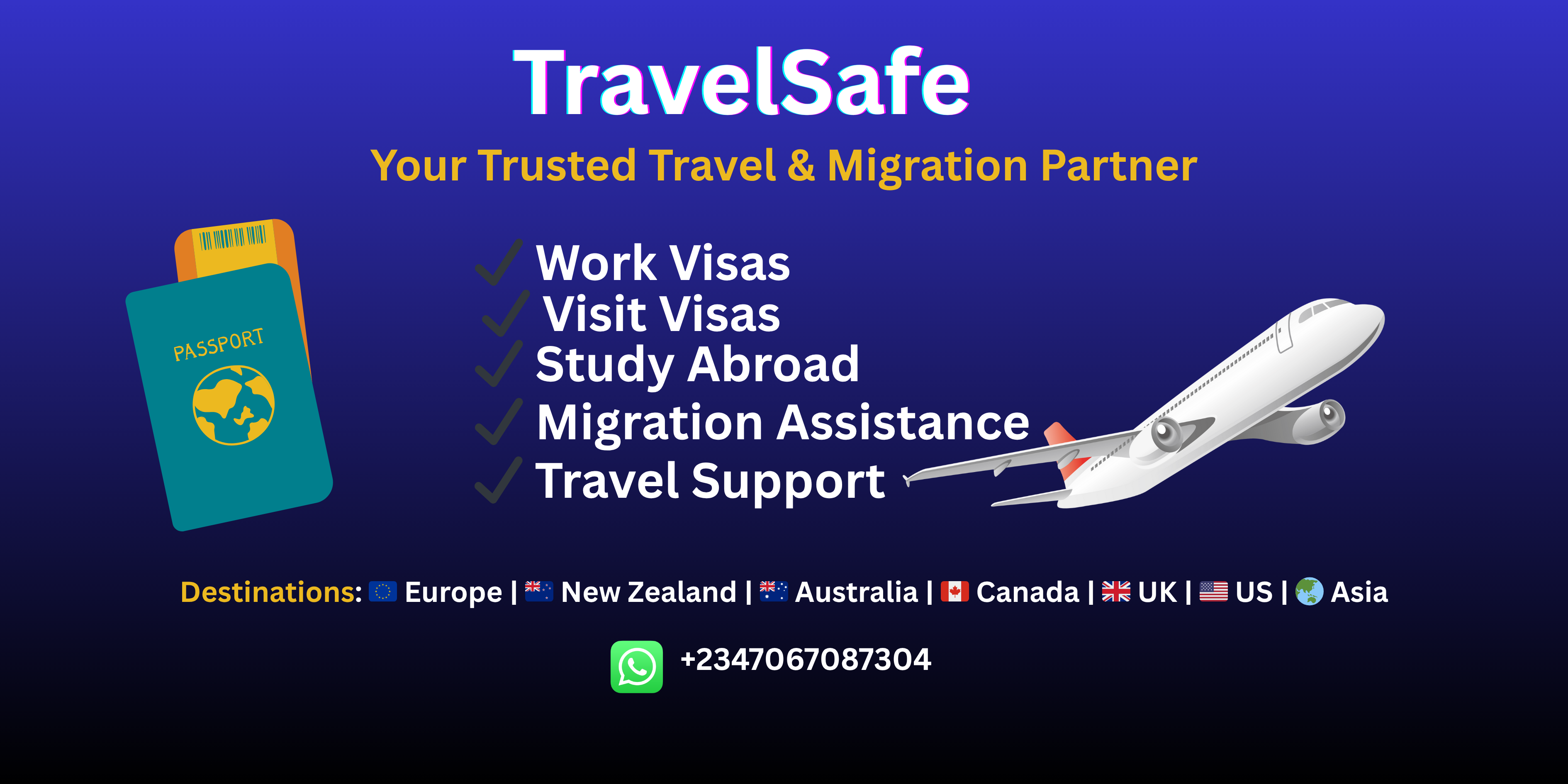 Since 2013, Travel Safe has been dedicated to helping individuals travel abroad for studies, work, and tourist visas with confidence. With our extensive experience and commitment to customer satisfaction, we’ve assisted thousands in making their international journeys smooth and worry-free.